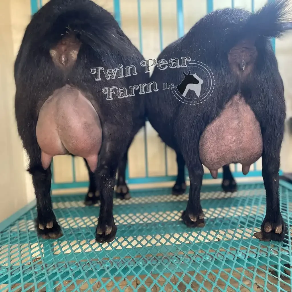 Crow’s Dam, Bedtime Story’s ff udder (left) 2022, her dam Layla’s 5th fresh udder 11 mos fresh.