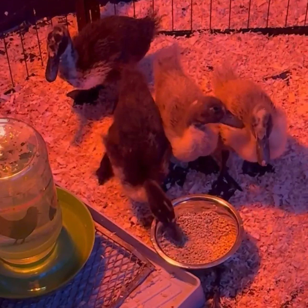 Ducklings grow FAST. For the first week to two weeks, ducklings will need a smaller secured enclosure with access to heat, water, and food 24.7. During the first two weeks we do the following: