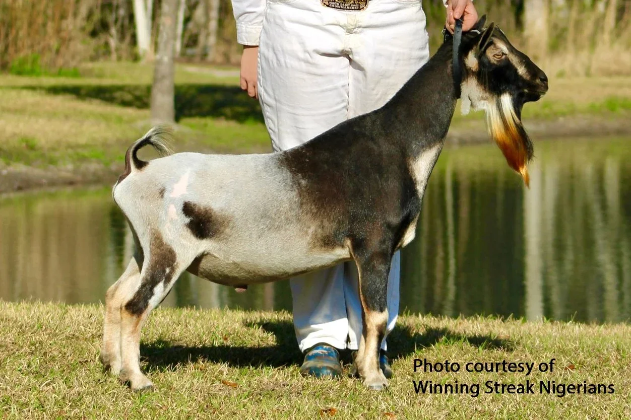 Dam’s 2022 Daughter: Winning Streak CM Artemis VVEG85 @02-03 owned by Blue Eclipse Nigerian Dwarfs